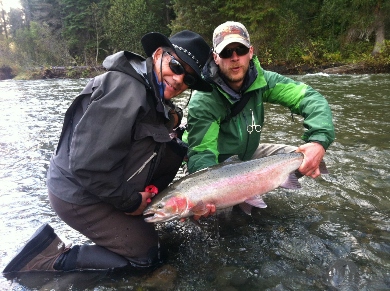 Mike and Gilly Mark Mcpherson with a Serious Steelhead Maximus