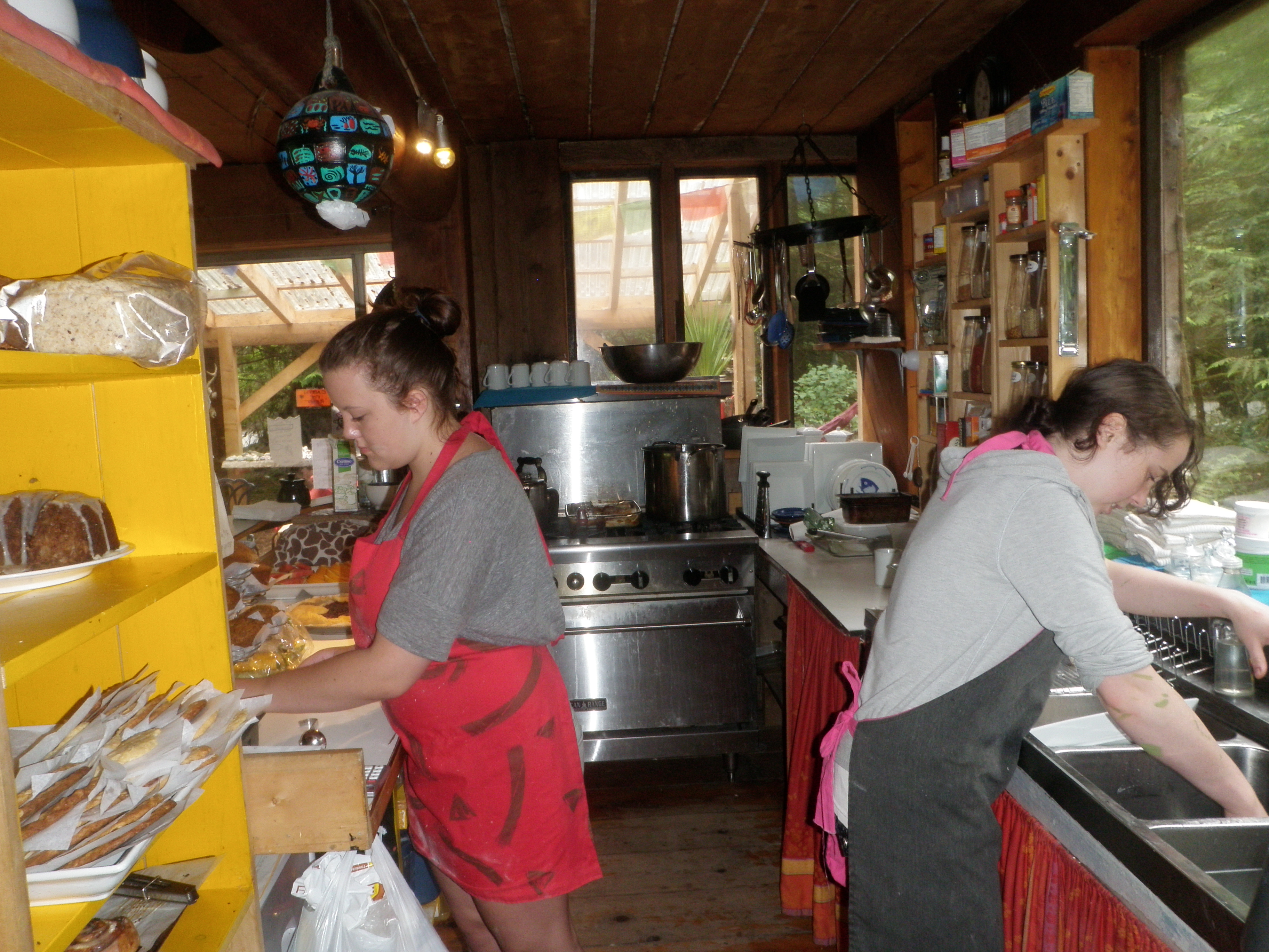 When we are living at North Beach Madeline works for Wendy in Her Famous “Off the Grid” Bakery, Moon over Niakoon. All Natural food, mostly vegetarian, Pizza, Soup, enchilada’s, Awesome Bread and Famous Cinnamon Buns. People come from all over the Islands for Coffee and one of Wendy’s Cinnamon Buns